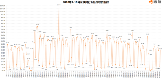 而根据猎聘大数据“2018年1-10月全行业新增职位指数”显示,从2018年9月中旬以来,全行业新增职位指数的确呈现较明显的下降趋势。