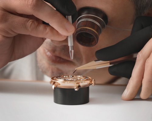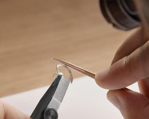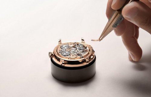 对制表师而言,世界常缩微至方寸之境:目镜下的微观宇宙,毫米级精密零件的微茫天地,制表工作台前的凝神屏息……外界喧嚣于此尽数隔绝。然而对赋予宝珀“大音乐家-四音四锤双旋律大小自鸣”超复杂功能腕表生命的罗曼(Romain)与约安(Yoann)而言,这样的描述只能算说对了一半。这两位制表大师在宝珀供职已有十余年,他们的职业生涯多半倾注于三问报时装置的打造上。但组装这枚由1000多枚零部件构建而成的“大音乐家-四音四锤双旋律大小自鸣”超复杂功能腕表,却极大拓展了他们的技艺疆界。他们需挣脱目镜与制表工作台与世隔绝的结界,不仅彼此协作,更与机芯设计师通力融合,共同完善构建这枚“大音乐家-四音四锤双旋律大小自鸣”超复杂功能腕表所需的精妙工法。他们所面临的挑战,远非三问报时装置可比拟——三问报时在音调与节奏上拥有较大宽容度,报时声只需大致清悦、规整即可;而“大音乐家-四音四锤双旋律大小自鸣”超复杂功能腕表却处在截然不同的维度:它所奏响的两段旋律必须拥有分毫不差的音准与史无前例的节奏精度。不仅如此,相较于其他大复杂功能机制,该腕表将所有机械元件完全集成在同一块主夹板之上,构筑出令人叹为观止的复杂结构。没有现成的脚本,没有既定的公式,也没有严格界定的先例可循——这款开创性时计的组装之路唯有凭借匠心开辟。仅制定组装方案,尤其为所面临的繁多工序设计并制作专属装配工具,罗曼和约安就需耗时逾六个月。每一枚腕表仅组装步骤都近乎耗时一整年,由罗曼或约安从头到尾独立组装。当制表师完成最后一道工序时,便会迎来数月辛劳后私享的犒赏时刻:他们会在金质的宝珀铭牌背面手工刻名,再将这份荣耀固定于自己亲手打造的精妙机芯之上。